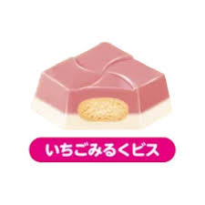 Ingredients: Vegetable oil (domestically produced), sugar, biscuits (contains wheat and milk ingredients), lactose, whole milk powder, condensed milk powder, processed cream, cocoa butter, salt/emulsifier (soybean-derived) colouring (red koji, vegetable pigment), leavening agent, flavouring, acidulant
